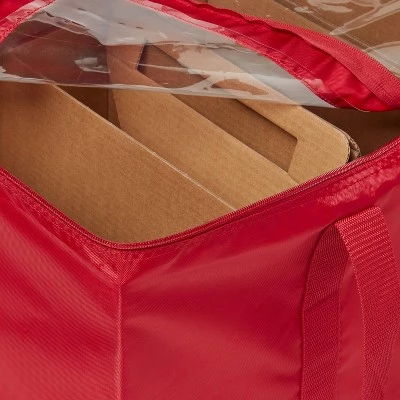 Pack away your string lights and seasonal decorations in this Christmas Lights Storage Bag from Wondershopâ˘. This rectangular storage bag in a bright red color features a collapsible design for convenient and compact storage. Complete with divided compartments, it keeps your string lights and other decorations neatly organized for next year’s use. The top zip closure gives you easy access, while the built-in attached handles allows for easy carrying.