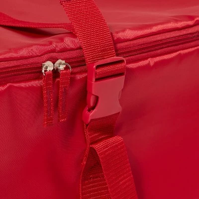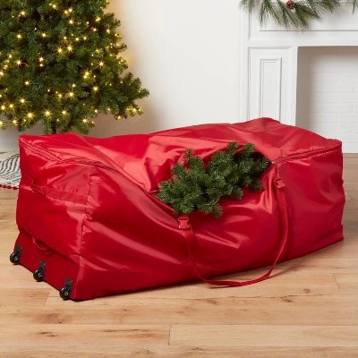 Store your festive tree at the end of the season with this Christmas Tree Storage Bag from Wondershopâ˘. This red Christmas tree storage bag features a collapsible design with wheels for compact storage and easy mobility. It protects your tree from dust, damage and other conditions so that you can keep it safely for next year use. The top zip closure gives you easy access, while the built-in attached handles allows for easy carrying.