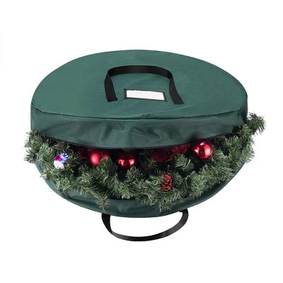 - Tote these Christmas tree and wreath storage bags via the two strong nylon handles, and label Christmas decor contents easily with identification tags on the exteriors