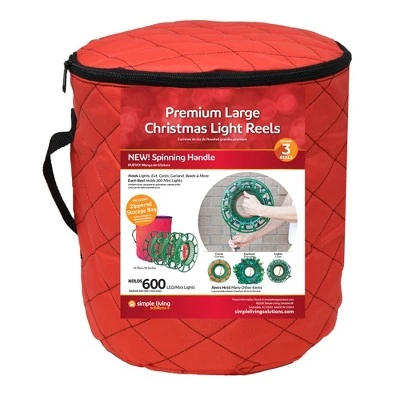Now that the holidays are over its time to store your decorations until next season. This light storage organizer is an ingenious way to store lights and to keep them from tangling. This container can hold up to three sets of lights, so you can keep your items preserved for seasons to come! Features:3 reelr red quilted holiday light storage organizer bagCan store up to 600 LED/mini lightsFeatures a zippered top closure Includes side carrying handles for easy transportIncludes 3 dividers to keep strings untangledFeatures sturdy tear resistant material to keep your lights protected for seasons to comeRecommended for indoor use only Dimensions: 11″ high x 10.5″ in diameterMaterial(s): polyester/metal/plastic