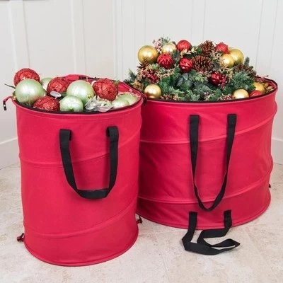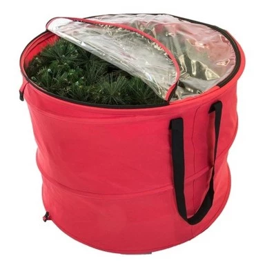 Now stow your holiday decors with ease and perfection using this storage bag. With side handles, this bag includes a zipper closure for a complete and impregnable covering. Avoid any sort of delay in grabbing this functional accessory that will offer a compact space to your valuable accents.Product FeaturesAllows for safe and easy storage of your holiday decorFully collapsibleZippered closureFeatures a clear view top window for quick identification of the contents inside Dimensions: 24″H x 30″diameter Material(s): polyester/metal/plastic