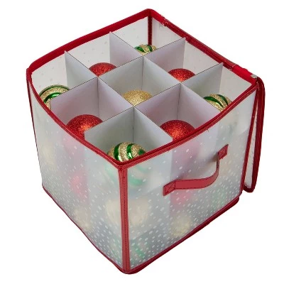 This Simplify 27-Count Ornament Organizer is a perfect holiday accessory to keep around the home! Helps keep up to 27 ornaments safely stowed away until the next holiday season! Comes with handles for easy carrying and a zipper-lid closure for protection. Supportive cardboard dividers help protect and organize ornaments, and see through front allows you to view your ornaments without having to go through the unit.
