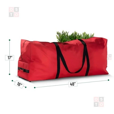 - Artificial Tree Storage-Bag Supports Disassembled Trees Of Up To 7.5 Feet Tall. This Tree Storage Container Comes With Wheels, Shoulder Straps, And A Card Slot. Dimensions: 48” X 16” X 17”