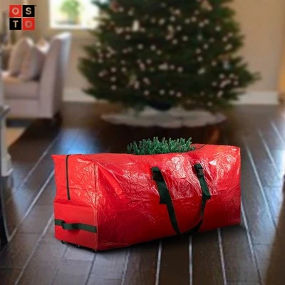 Nothing enhances the living room like a freshly-scented Christmas tree, and we want nothing more than keeping it that way for many seasons to come. And the only way to achieve that is by keeping it protected in storage amongst the dust-mites, bugs, and mold. In that case, you have come to the right place. Bag is of waterproof material for insurance against water damage; 2-way tightly-zipped dual zipper prohibits any type of basement residents from invading your x-mas tree. And about the transference between storage and living room, bag is furnished with 2 rubbered wheels for the most convenience of carriage; to utilize its wheels to the utmost, tree storage bag is equipped with stitch-reinforced carry handles and side handles for added accessibility and easy carrying. Name the type of tree in the designated card slot. And for a little extra dazzle to the holidays, bag comes in a couple of bright, festive, holiday colors. With all these handy and practical features, packing and unpacking trees are now easier than ever!