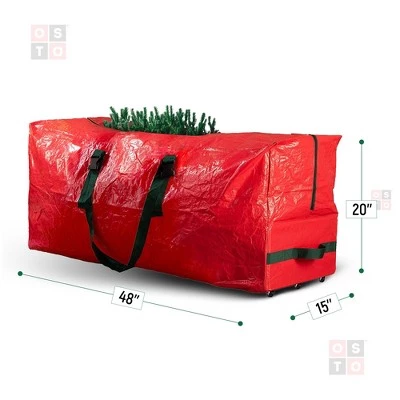 - Artificial Tree Storage Bag-Artificial Tree Storage Bag Accommodates Disassembled Trees Of Up To 7.5 Ft. Tall. Bag Comes With A Pair Of Stitch-Enforced Hand Grips And Carry Handles, 3 Rubbered Wheels, A 2-Way Dual Zipper, And A Card Slot. Dimensions: 48β X 15β X 20β