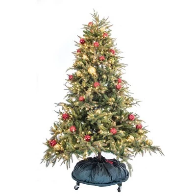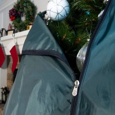 We understand your frustration with your artificial Christmas tree. Each year, set up and take down of your tree tests your patience as you assemble each section, try to find the plugs to make all the lights work, and move the ornaments around to try and get the same perfect look that you remember from last year. You force a large tree into a cardboard box that is too small to fit your Christmas tree, and break your back carrying the box in and out of storage. This repeated assembly and disassembly, along with that taped together cardboard box, shortens the lifespan of your Christmas tree. The good news is that it doesn’t have to be this difficult or time consuming. The upright tree storage bag is the perfect artificial Christmas tree storage for fully assembled and decorated trees up to 9ft. tall. Storing your tree upright allows you to keep your tree assembled and decorated the perfect way, cutting away your set up and take down time. With the included rolling tree stand, set up and take down becomes as simple as wheeling your bagged tree in and out of storage, and suddenly the task you once hated becomes a whole lot easier. Next year, when set up your tree, simply bunch the bag up at the base of your tree, securing it in The attached tree skirt, and your storage bag will be discreetly hidden from sight as if it weren’t even on the tree to begin with. A Patented Product: Patent(s) 7,694,494 and 7,775,360
